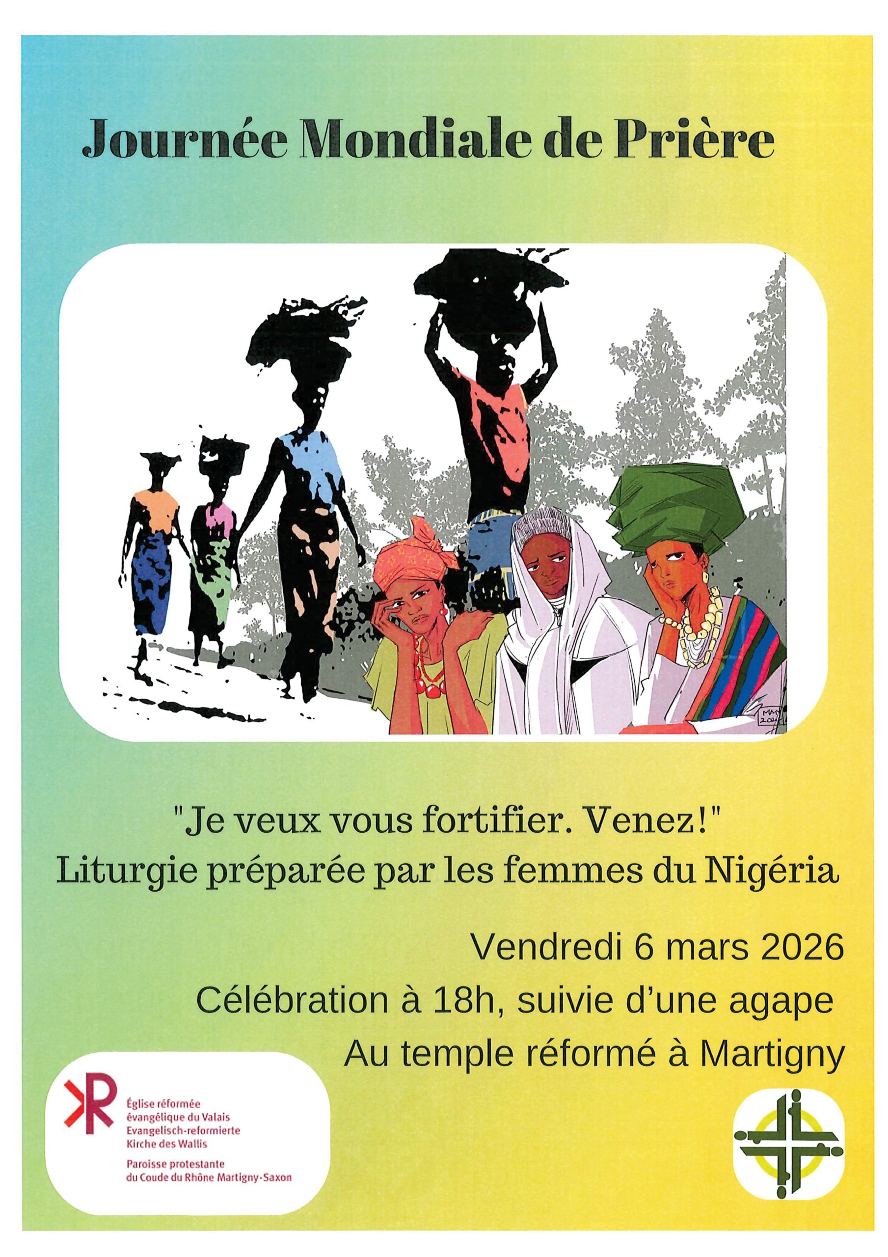 La paroisse protestante de Martigny convie toutes et tous à vivre une célébration spéciale préparée par les femmes du Nigeria à l’occasion de la Journée mondiale de la prière.