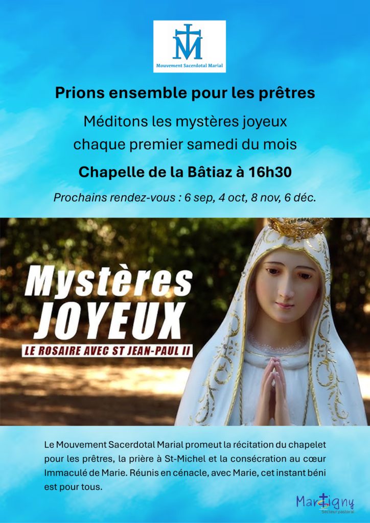 Prier Marie pour les prêtres + Ajouter à mon Agenda Google + Exporter vers iCal Date 05 Sep 2025 Expired! Heure 16:30 Lieu Chapelle de La Bâtiaz Chemin de la Chapelle 4, 1920 Martigny Catégorie 0. COMMUNICATION INTERNE 0.1 Equipe pastorale 0.2 Magazine L'Essentiel Annonces Hebdo Page Bourg Page Combe Page d'accueil Page Ville SITE PUBLICATION ACTUALITÉS Organisateur Maryline Rouiller Téléphone 079 359 64 65 Email maryrouiller71@gmail.com Partagez cet événement Rechercher :